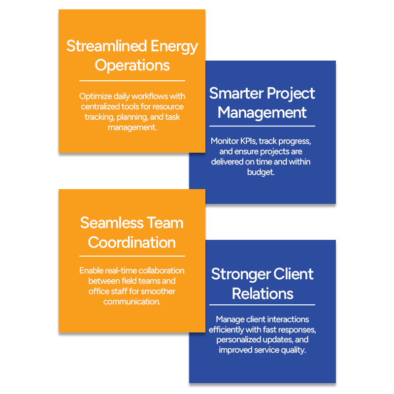 Zoho provides a robust suite of tools specifically designed for the energy sector, enabling companies to streamline operations, improve project management, and strengthen customer engagement. With Zoho, energy businesses can efficiently manage their workflows, monitor key performance indicators, and ensure projects are executed on time and within budget. The platform facilitates seamless communication between teams, allowing both field and office staff to collaborate effectively while keeping track of resources and progress. In addition, Zoho’s customer management tools help energy companies maintain strong relationships with clients, respond promptly to inquiries, and deliver personalized services that enhance satisfaction and loyalty. By integrating operations, project oversight, and customer engagement into a single platform, Zoho empowers energy businesses to optimize processes, reduce operational inefficiencies, and make data-driven decisions. This holistic approach ensures that organizations can remain competitive while delivering reliable and high-quality energy solutions.